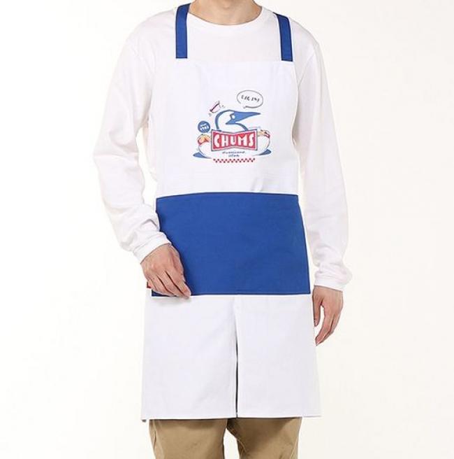 レトロでポップなアメリカンダイナー風デザインを施した「CHUMS HOMEシリーズ」のエプロンです。こちらはブービーバードが大きく描かれていますが、他にも派手なデザインのタイプがあり、着用する場所を選ぶデザインかもしれません。