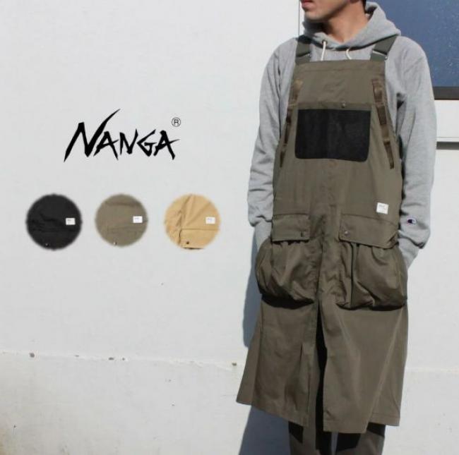 新たな難燃素材を使ってアップデートされたNanga(ナンガの)「焚火エプロン」。フロントからバックまでカバーできるサイズ感があり、今までの一般的なエプロンとは違うストリート感あふれるデザインとなっています。
