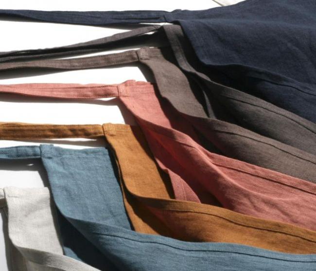 軽量でハリがあり、丈夫なコットンツイル生地を使用している質も良く、胸当てタイプ(ビブ)とサロンタイプ(ハーフ)など、さまざまなタイプがラインナップされています。