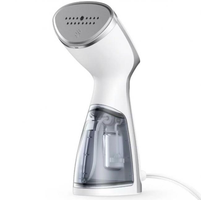 コンパクトなアイロンで集中的に噴射することができ、きめ細かいスチームが繊維の奥まで浸透。頑固なシワを伸ばしてくれさらに除菌までも行ってくれます。その他細かい所もアイロンしやすい先細りチップ、取り外しできるタンク、3段階温度調節機能など、機能性も高いアイロンとなっています。