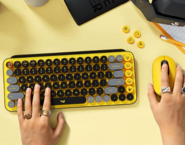 ポップなカラーとデザインが素敵なロジクールのキーボード「POPKEYS」。タイプライターのようなレトロ感があり、ショートカットキーやメニューキーが絵文字となっていたりと、若い人に好まれそうなデザインが採用されています。