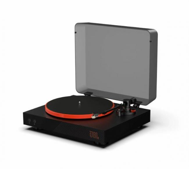 JBLの最新Bluetooth内蔵のレコードプレーヤー「JBLSPINNERBTGLDJN」。アルミダイキャストを採用したプラッターが、メカっぽくクールな印象を与えてくれていますね。