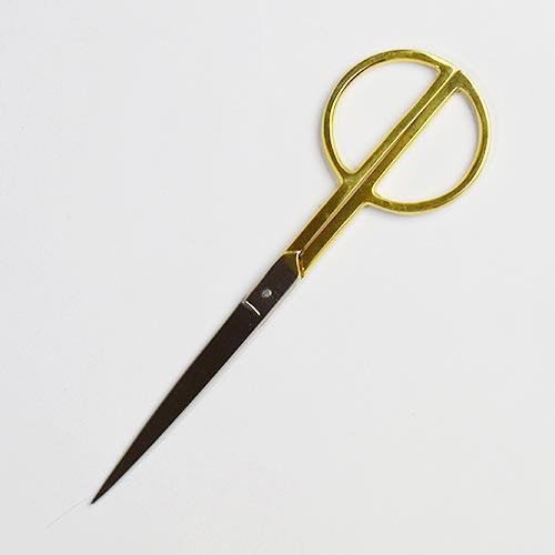 縫製や手芸などのハンドメイドで使用することの多い裁ちばさみ。布や糸をきりやすく、特に洋裁や和裁などで布地を正確にカットする際に使われます。片側の刃が平らになっていることが多く、これは布がずれにくく正確にカットするためのもので、デザインとしてのアクセントにもなっています。
