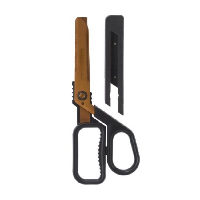 一つのハサミに4種類の刃が備わっており、ストレート刃は紙や布などに使い、ギザ刃は多様な素材に使用。ワイヤーカッターは固いコードなど、段ボールオープナーは開梱作業にと、4つの刃をそれぞれの場面で使い分けられます。