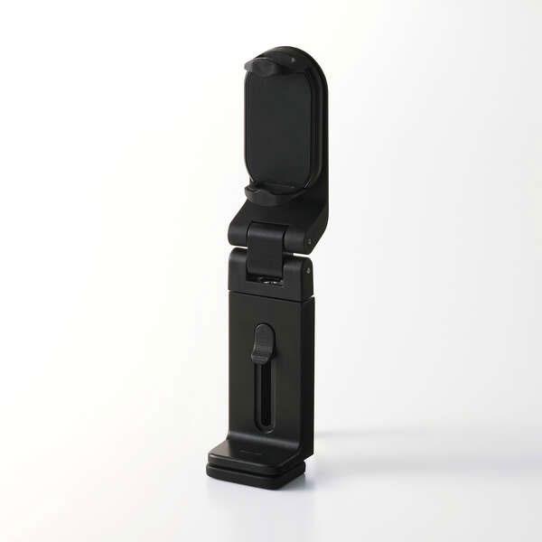 こちらはポケットサイズに折りたたんで、どこにでも快適に持ち運びができるタイプのスマホスタンドになります。これだけ小さくなるにもかかわらず、高さ、角度の調節を細かく設定することができ、滑り止めのラバーなども細部にしっかりとこだわって作られているようです。