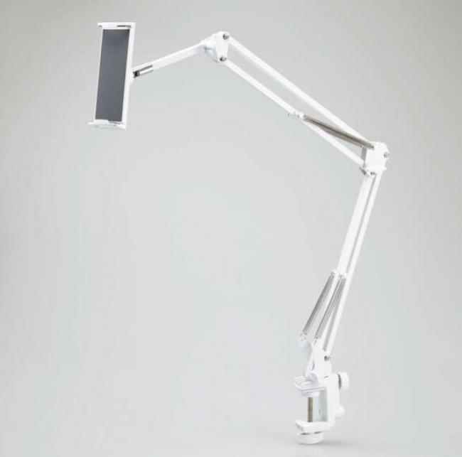 縦にも横にも固定できる2Wayのスマートフォン・タブレット用フレキシブルアームスタンド「TB-DSZARMBEDWH」。クランプは設置する場所に合わせて、縦方向や横方向に付け替えができるので、ベッドのヘッドボードに設置して、寝ながら使う使い方が最適と思われます。