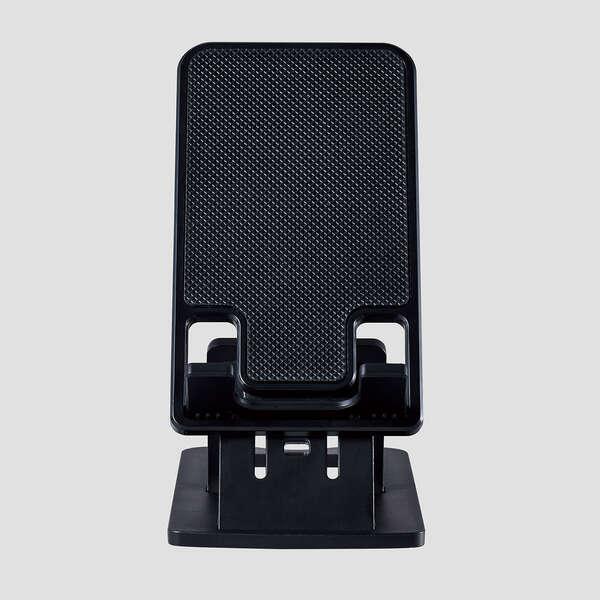机や棚などにはさみ込んで固定できるクランプ式のスマホスタンド「P-DSCLMPFSFXBK」。机に固定するので安定感が高く、滑り止め付きで、4.6~6.9インチまでのスマートフォンをしっかり固定できます。固定だけではなく、折りたたんで机の上に置くだけで、卓上スタンドとしても問題ありません。軸は縦に180度、左右に360度と自由にアングルを変更でき、縦向きでも横向きでもシーンに合わせて使用できます。実用性重視のシンプルデザインで、主張しすぎず、仕事空間でも使いやすいモデルです。