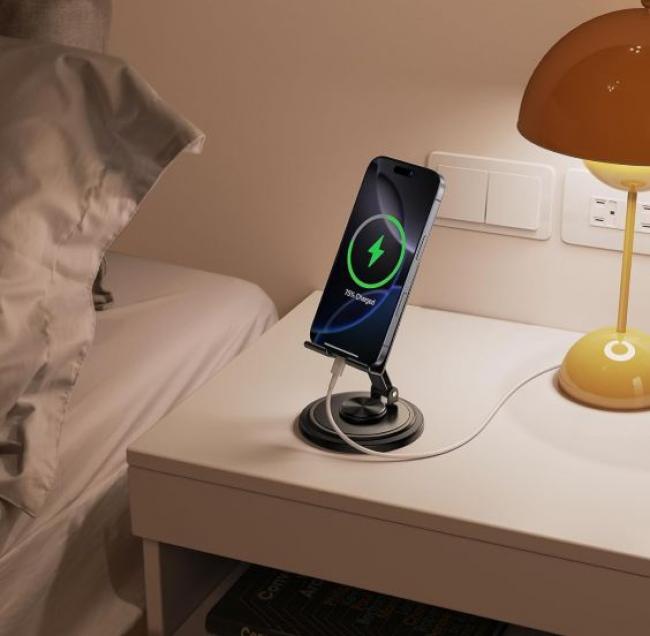 アルミニウムや金属素材を採用しており、重厚感と高級感がおしゃれなMagSafe対応のマグネットスタンドです。冷たすぎない質感、視覚的な安定感があり、安っぽさを感じさせない上品さにつながっています。