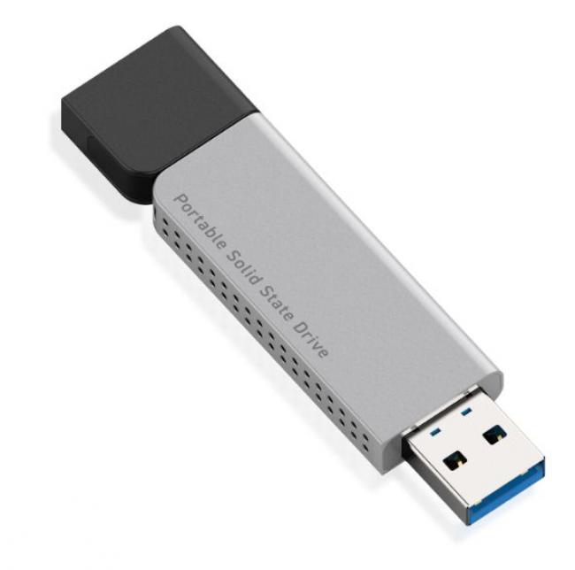 USBメモリにそっくりなスティック型SSDで、USBポート同士の距離が近いノートパソコンやUSBハブなどで、USBデバイスを複数使用するときに便利な作りです。本体はSSDなので、USBよりも転送速度も速く、特に複数GBのファイルを扱うときに、より速さを感じやすいと思われます。
