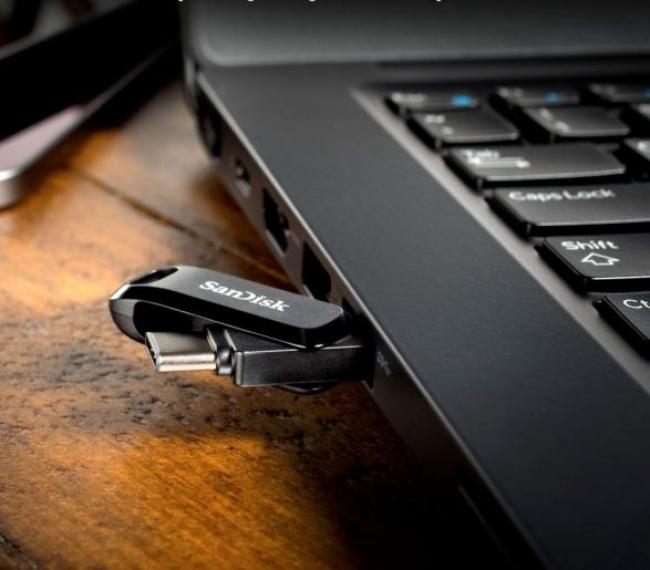 USBType-CとUSB-Aの両方に対応したデュアルコネクタ型USBメモリ「Ultra Dual Drive Go」。回転式のスイベルデザインは、必要に応じて出し入れでき、コネクタを保護してくれるので、安心して使うことができます。